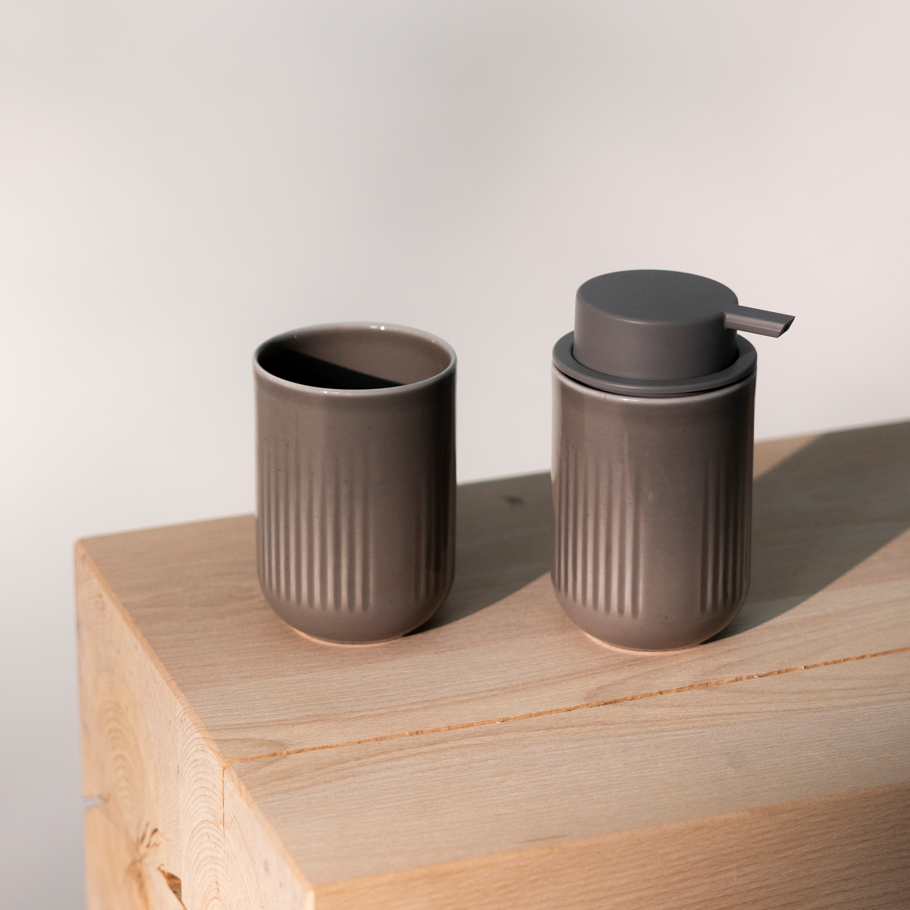 Mikä olisikaan arkisempaa kuin hampaiden pesu. Aamuin illoin, myös aivan sieltä takaa. Tämän opimme jo lapsena. Tuuli Saarelaisen suunnittelemat keraamiset Uoma-kylpyhuonetuotteet tuovat arkisiin hetkiin terveiset Posiolta, maailman pohjoisimmalta keramiikkatehtaalta. Uoma-purkin pintaa koristaa tyylikäs tummanharmaa lasite, sekä linjakkaat urat.