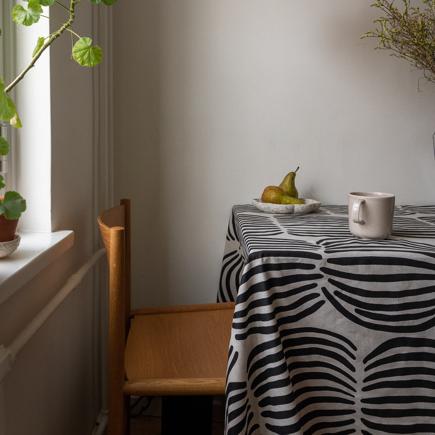 Akryylipinnoitetusta puuvillasta ja korkista valmistettu tabletti hylkii likaa ja se on helppo pyyhkiä puhtaaksi. Tabletin koko on 30x43 cm. Käsinpesu.