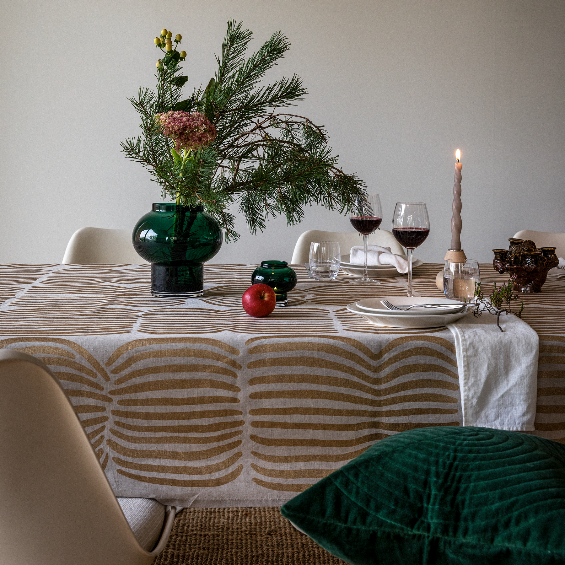 Loppukesän kypsät tuulessa huojuvat viljapellot ovat pohjoisen hypnoottinen näky. Nyt saman kokemuksen voi tuoda kotiin Minna Niskakankaan suunnitteleman klassikkokuosin kultaisen version muodossa. Viljan kuvio on painettu laadukkaalle luonnonväriselle puolipellavakankaalle. Halusitpa sitten uinua viljapellon äärellä tai nauttia kahvit sen keskellä, kuosia löytyy aina keittiötekstiileistä, kankaisiin ja Vilja-kuvioituihin mukeihin.