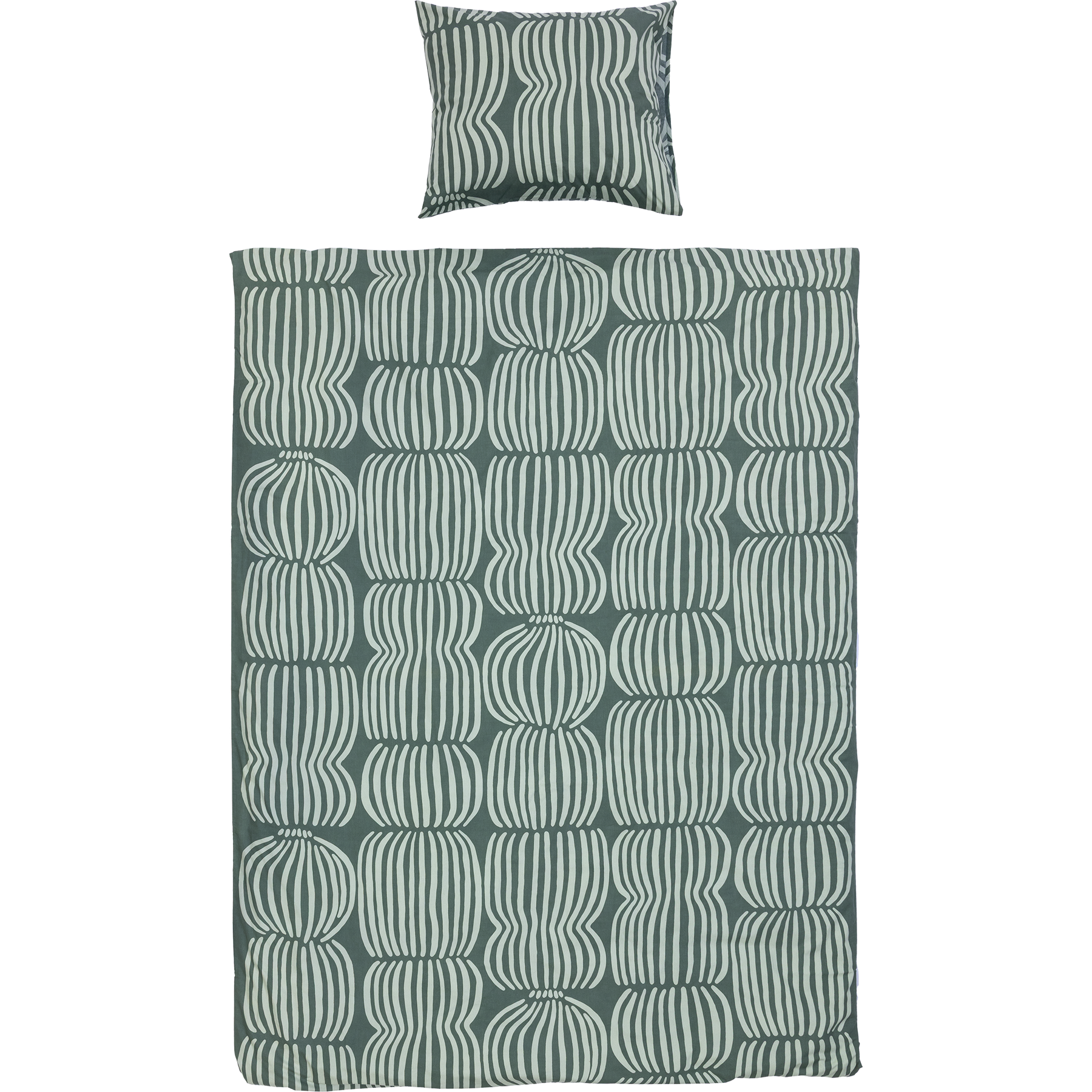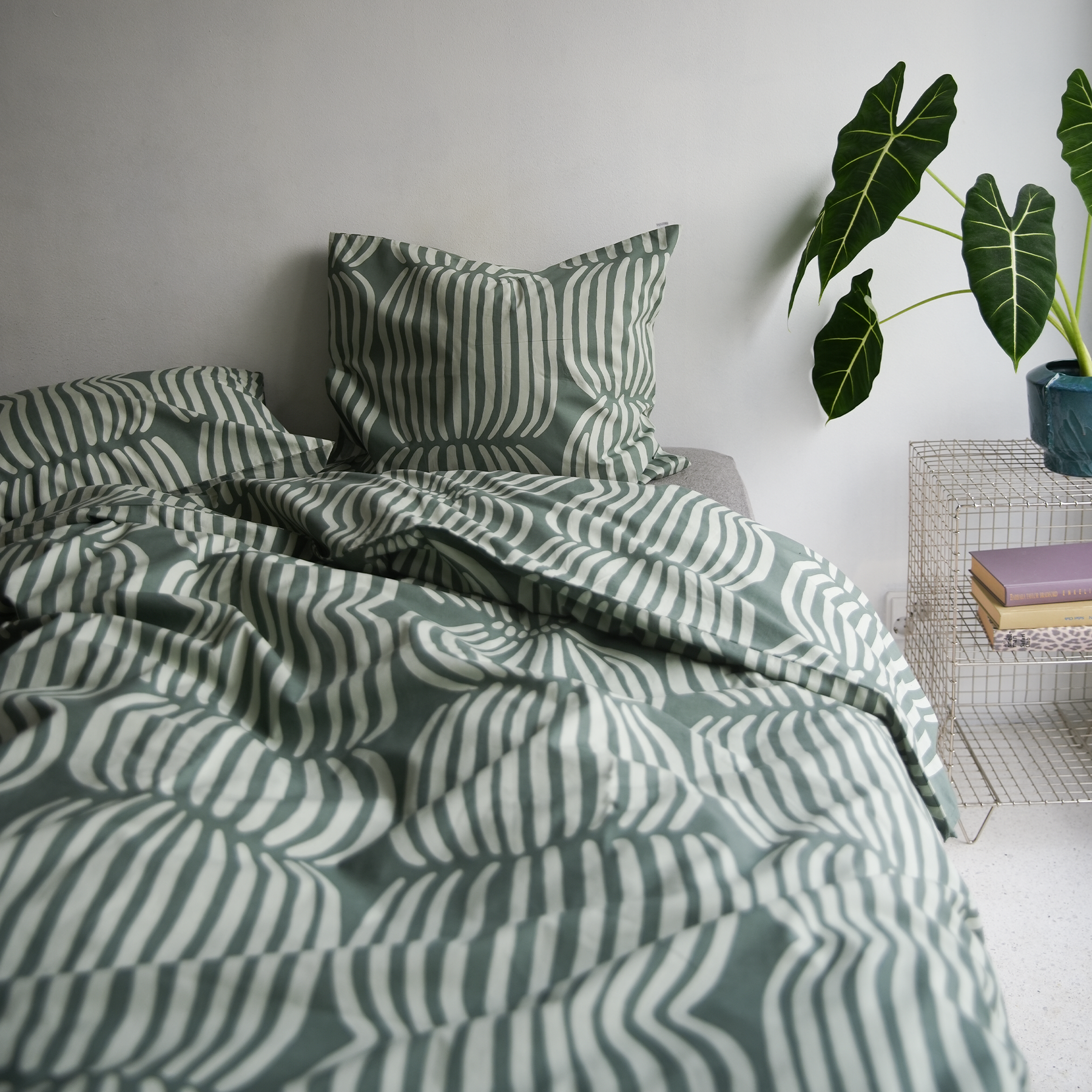 Auringossa huojuvat viljapellot ovat pohjoisen hypnoottinen näky. Nyt saman kokemuksen voi tuoda kotiin Minna Niskakankaan suunnitteleman kuosin muodossa. Halusitpa sitten uinua viljapellon äärellä tai nauttia kahvit sen keskellä, kuosia löytyy aina lakanoista pöytäliinoihin ja patalappuihin sekä astioihin. Mallisto on täydentynyt uudella vihreällä pussilakansetillä.
