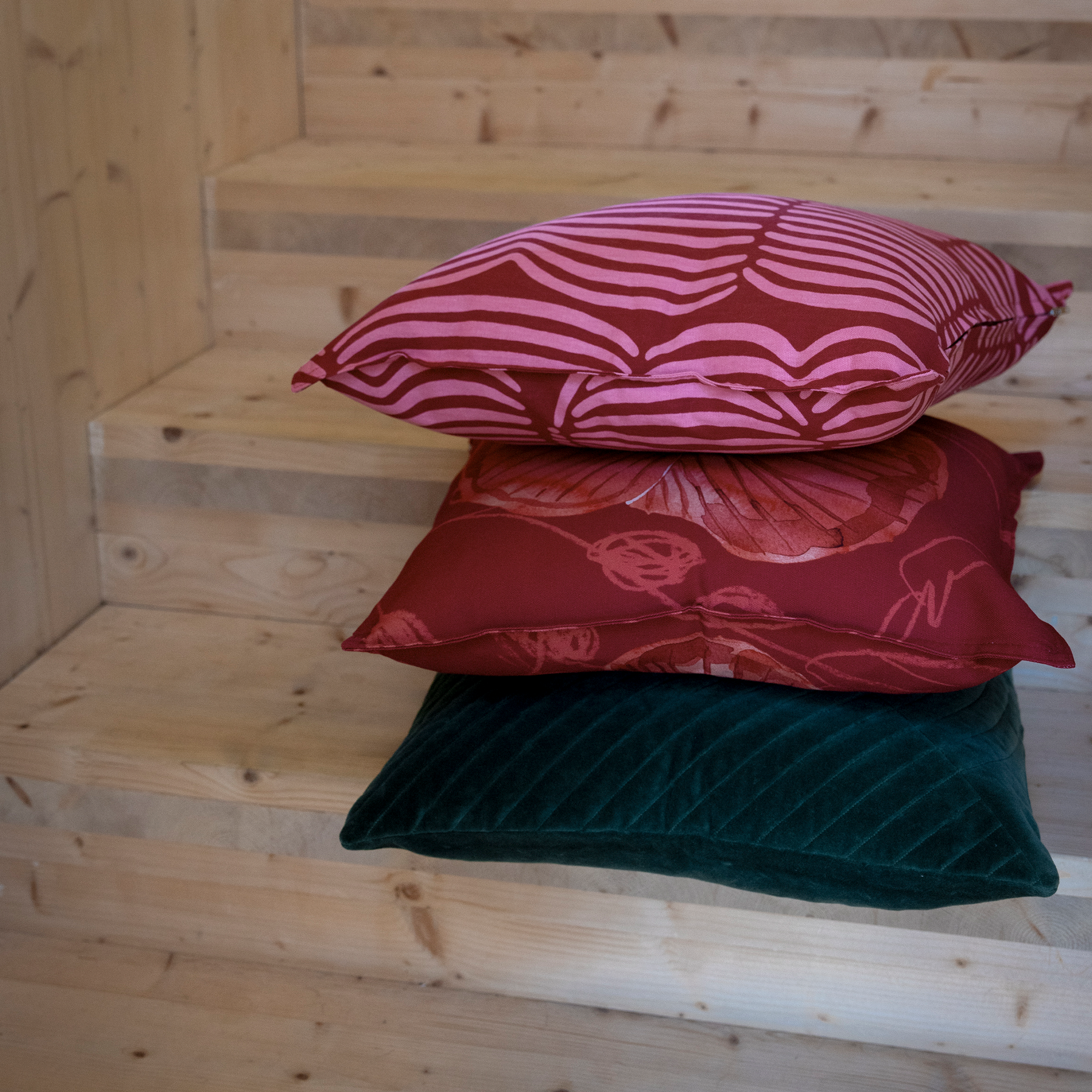 Vilja-tyynynpäällinen on kooltaan 45x45 cm, joten siihen sopii Pentikin 48x48 cm kokoinen sisätyyny, joka saa tyynyn näyttämään houkuttelevan muhkealta. 100 % puuvillaa.
