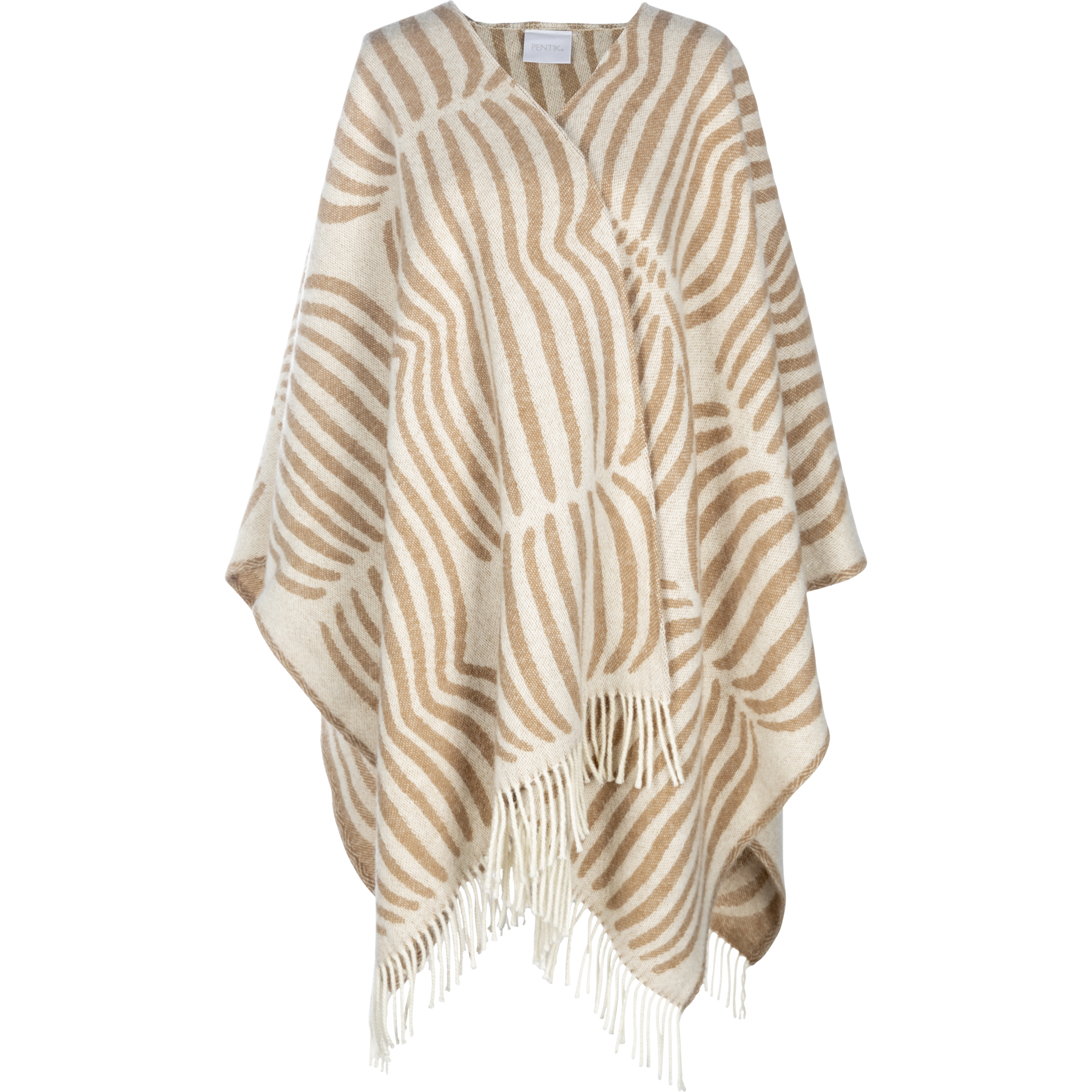 Vilja-villaponcho on kaunis asuste, joka lämmittää mukavasti. Käytännöllinen poncho on helppo sujauttaa päälle ja yhdistää moneen eri asuun. Ruskean Vilja-villaponchon koko on 130x170 cm ja sen materiaali on 100% villaa.