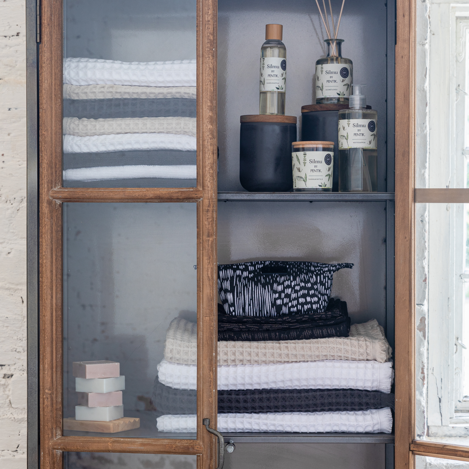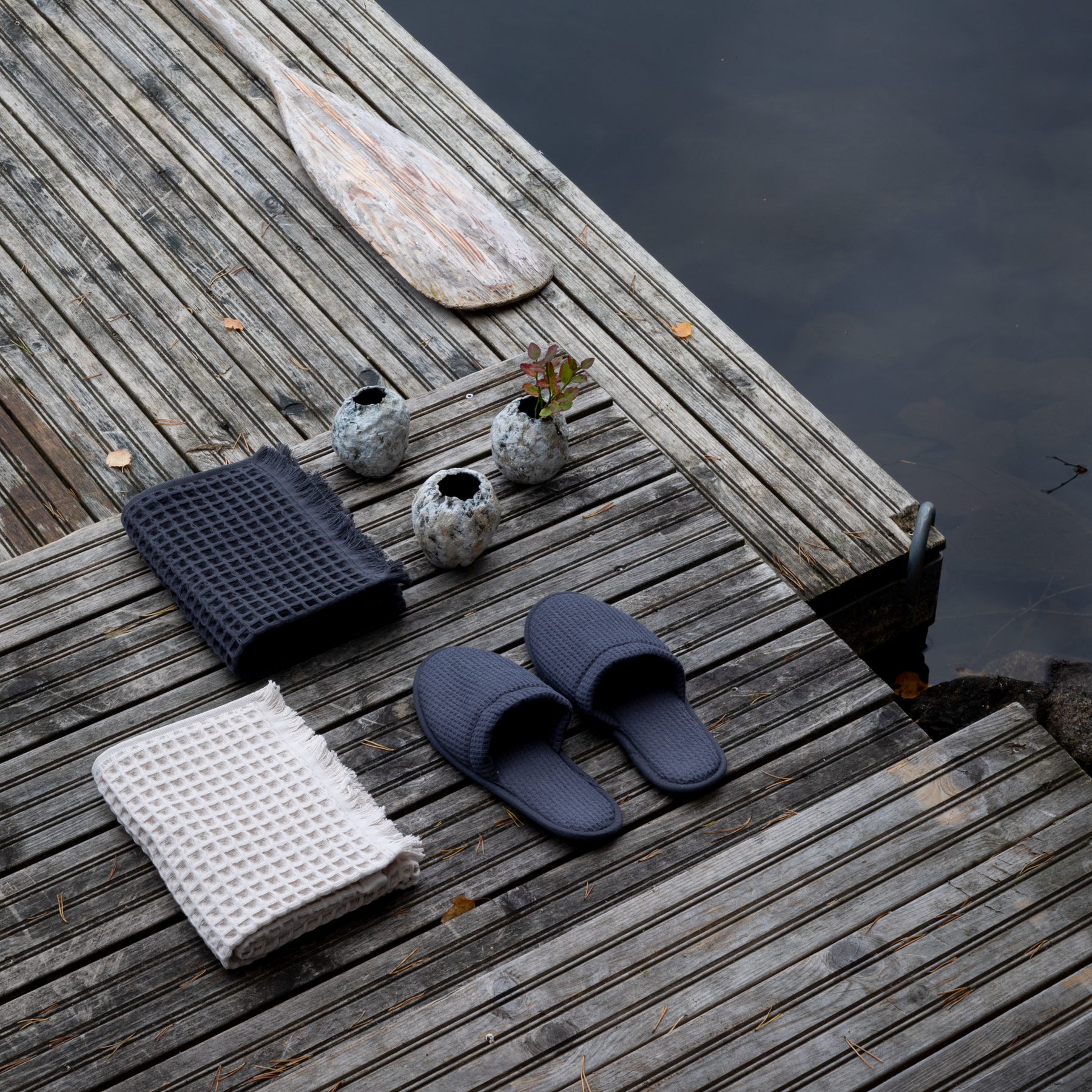 Pohjoisen karusta, mutta kauniista luonnosta ammentava spa-mallistomme tuo raikkaan ja rentouttavan tunnelman kylpyhuoneeseen ja saunaan. Pehmoinen Vohveli-pyyhe kuivaa hyvin ja siihen on ihana kääriytyä suihkun tai saunomisen jälkeen.